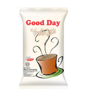 Kali ini Good Day menghadirkan kreasi olahan kopi yang memberikan rasa kopi yang benar-benar berbeda. Hadir dalam kemasan sachet Good Day 3in1 Coffee Vanilla Latte, kopi ini akan memberikan rasa vanila asli yang menyatu dalam kopi sehingga Anda yang menyukai rasa vanila yang menggoda, tetapi ingin meminum kopi sangat tepat memilih kopi yang satu ini. Aroma khas kopi yang berbaur dengan vanila akan mengubah rasa bosan dan penat Anda menjadi rasa yang begitu ceria.